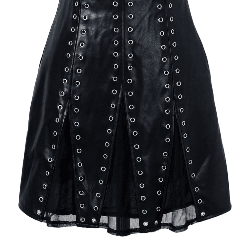Custom Black Sleeveless Mini Dress with Metal Eyelets