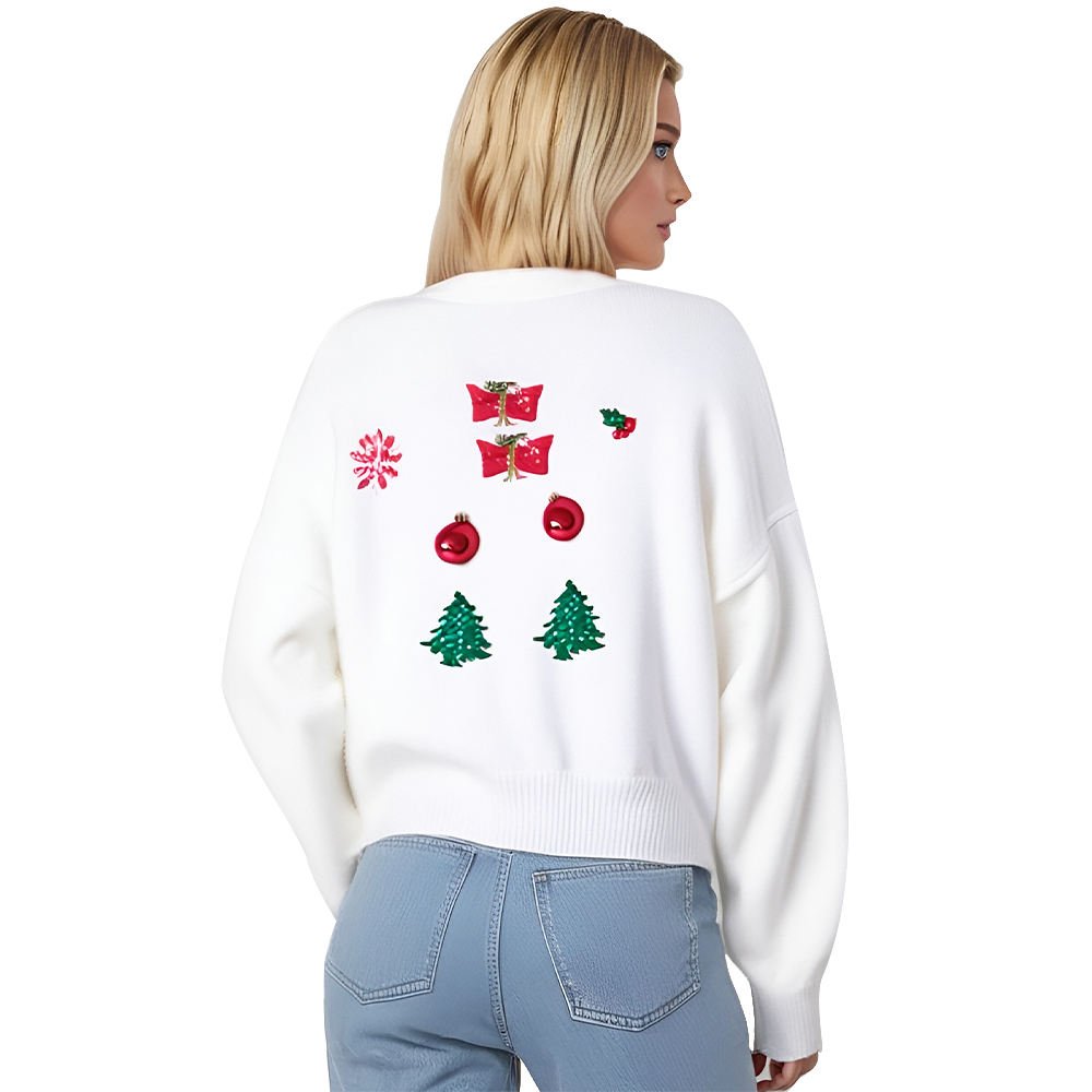 Custom Christmas V-Neck Knitted Sweater for Women – Long Sleeve Cardigan
