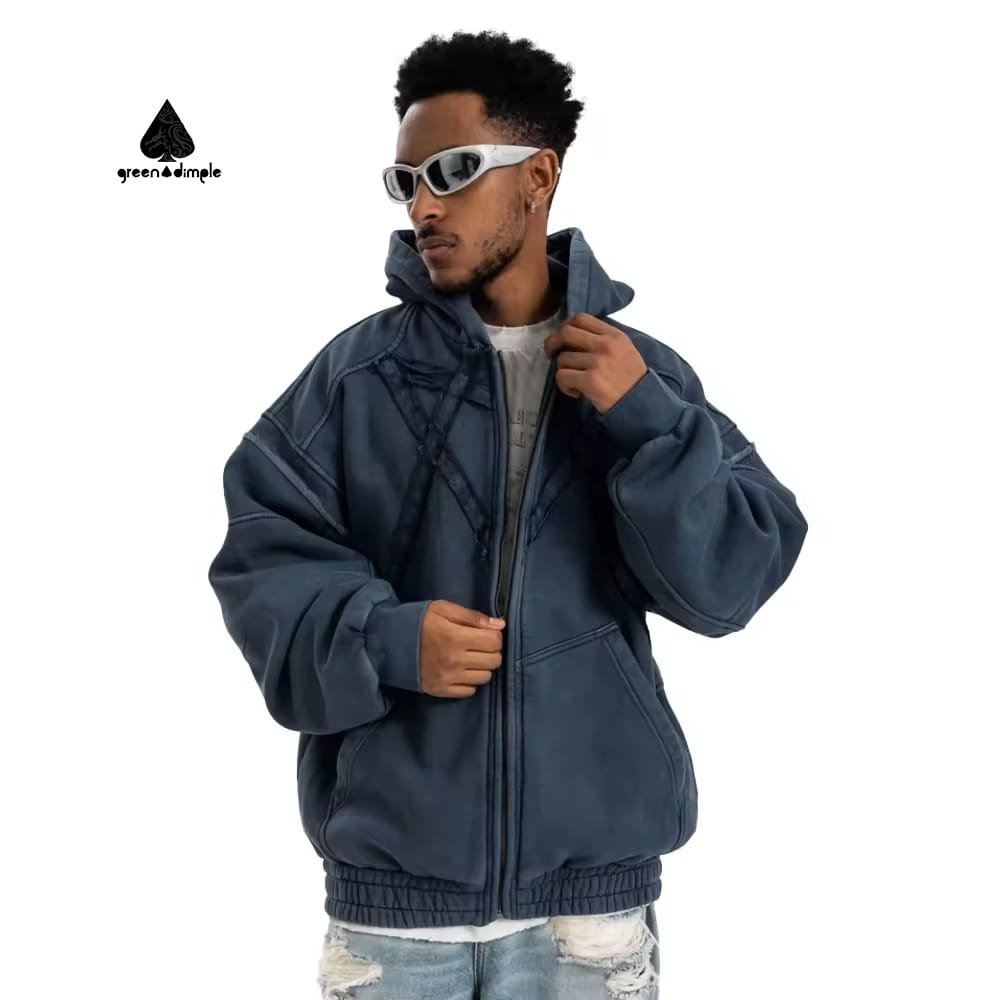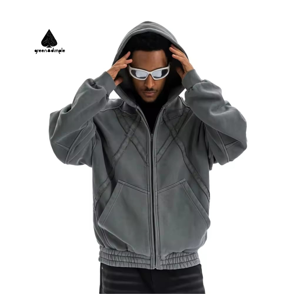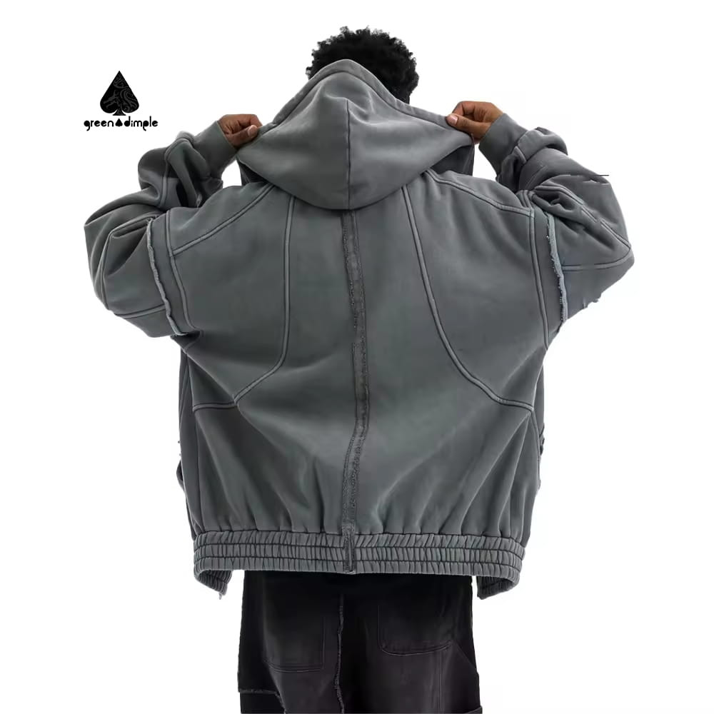 The oversized fit with hood and full zipper offers a relaxed silhouette that works perfectly for casual fashion collections and streetwear brands. Its solid color design makes it easy to match with different outfits while maintaining a clean and minimal aesthetic.