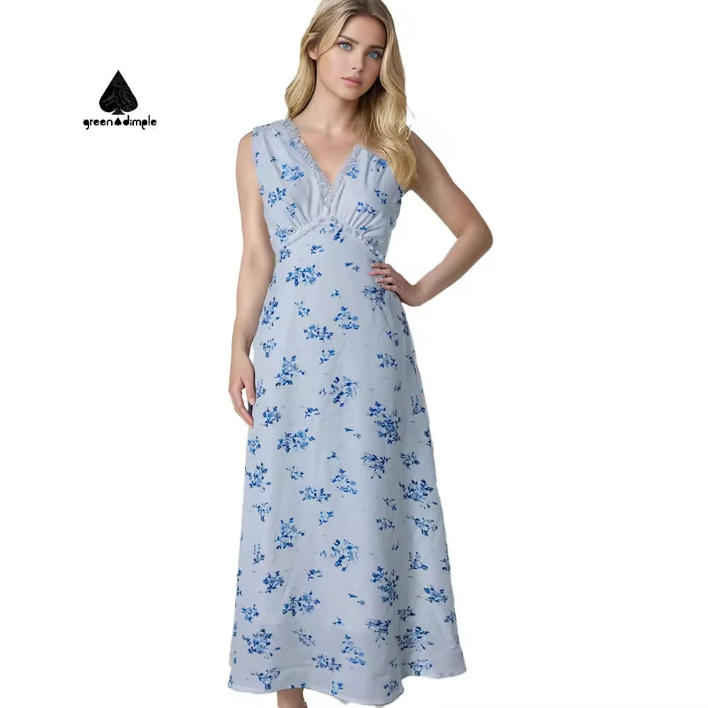 This floral summer maxi dress features a lightweight fabric and elegant vintage-inspired print, making it ideal for warm weather collections. The flowy silhouette offers comfort and effortless movement, perfect for beach outings and holiday styling.