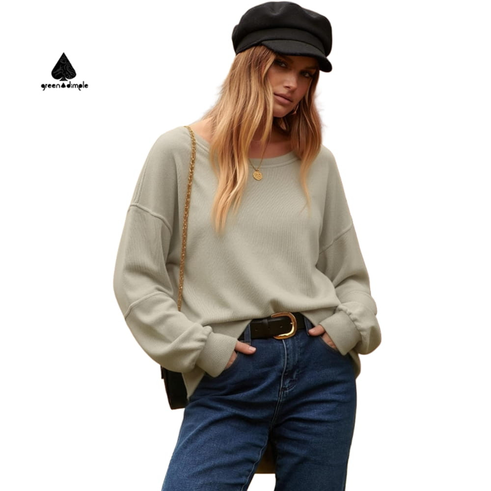 Made from soft and warm fabric, this oversized crewneck sweatshirt features ribbed knit details for added texture and durability. Perfect for fall and winter, it pairs effortlessly with jeans, joggers, or skirts for a cozy yet stylish look.