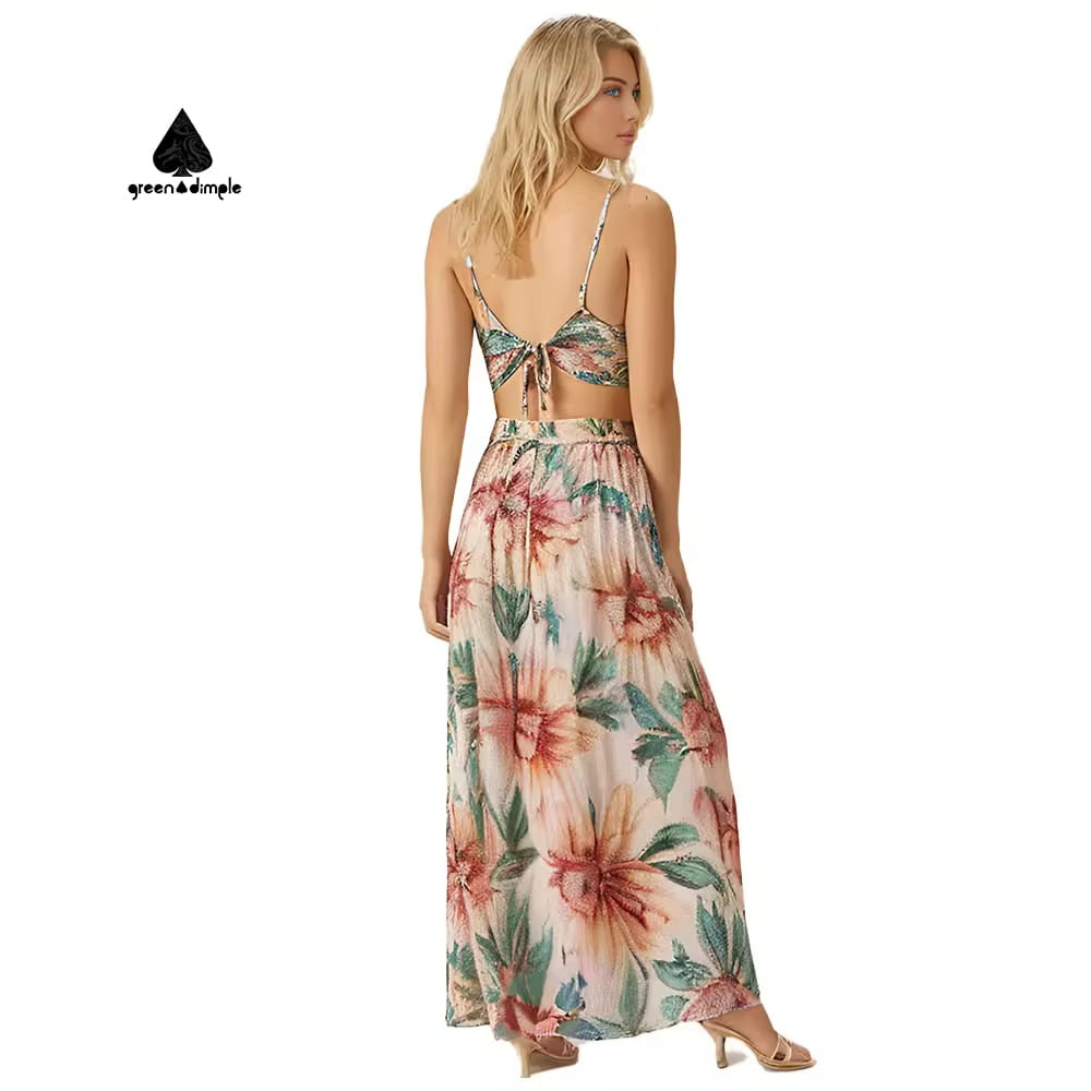 Elevate your summer collection with this elegant printed top and skirt set for women. Designed with a lightweight suspender top and a flowing long skirt, this two-piece outfit delivers a perfect balance of comfort and feminine style, ideal for warm-weather fashion.