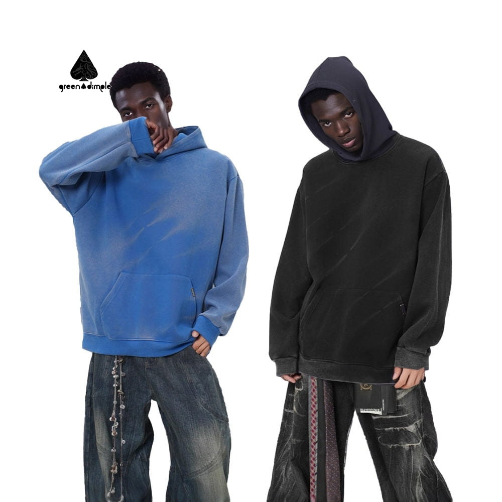 This vintage acid wash hoodie features heavyweight fleece fabric with a sun fade washed finish for a retro streetwear look.