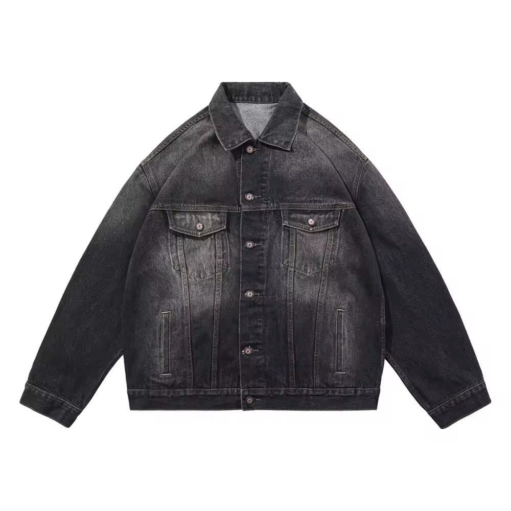 The vintage denim jacket is designed for modern streetwear collections, featuring a washed finish that creates a classic and worn-in aesthetic. Made from durable denim fabric, it delivers both comfort and long-lasting quality for everyday wear.