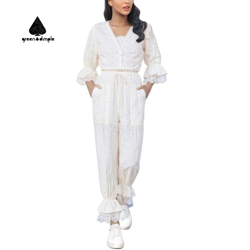 Elegant White Lace Two-Piece Ruffle Set for Women