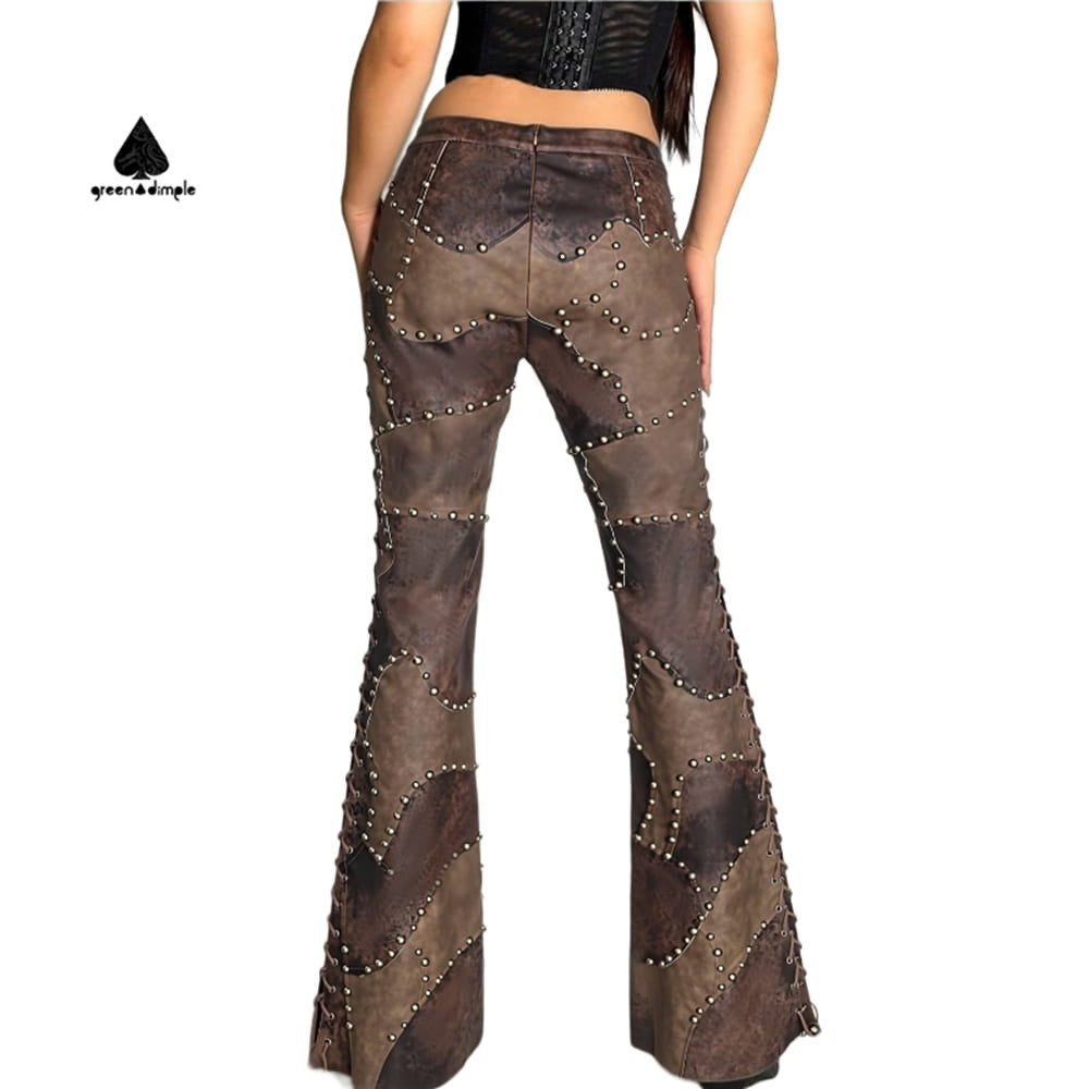 Step into bold retro fashion with these women patchwork flare pants, designed for those who love standout streetwear style. Featuring a unique patchwork construction, these pants combine vintage-inspired tones with eye-catching stud embellishments, creating a perfect balance between edgy and fashionable.