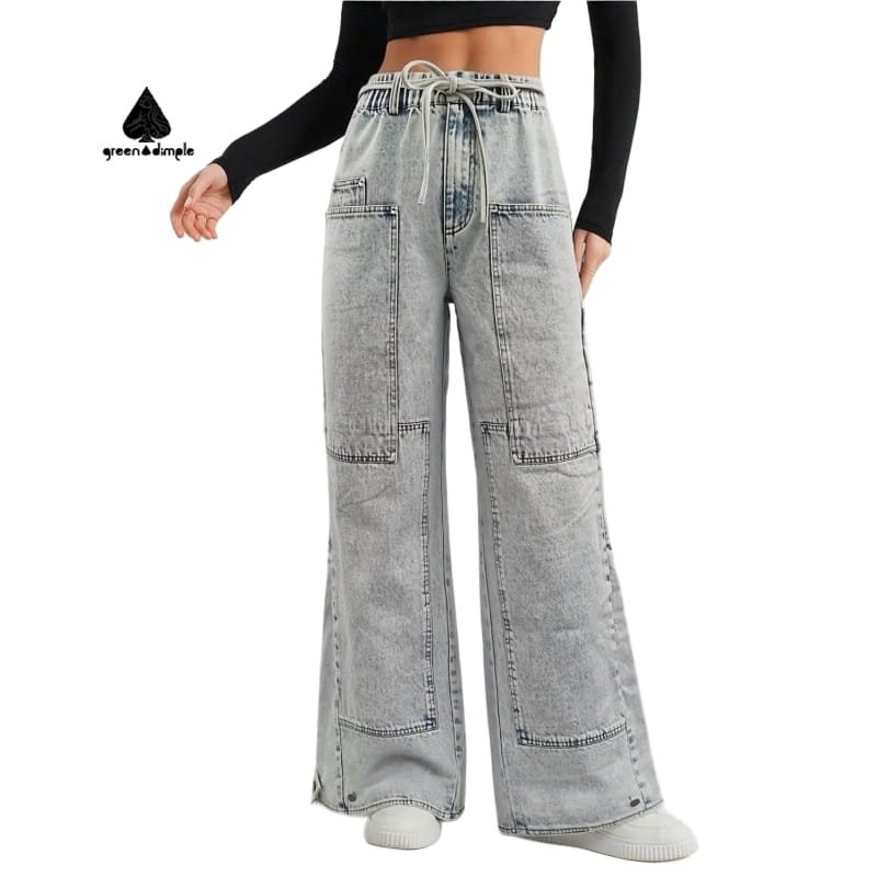 Women high waist denim jeans are designed with a clean silhouette and a comfortable elastic waistband for everyday wear. The vintage washed denim fabric offers breathability and flexibility, making this style suitable for spring and summer collections.